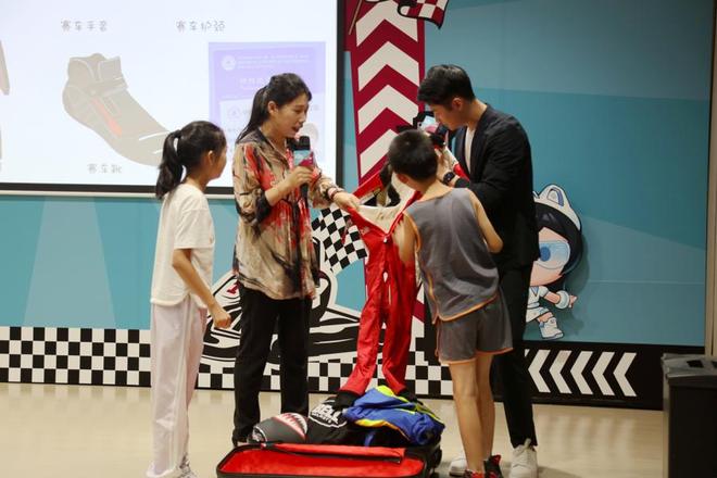 在新书分享环节,姚启明化身绘本主角“小J老师”,带来了一场生动的科普讲座。她从1956年第一辆由割草机改造的卡丁车讲起,讲述了这项运动如何从小众爱好发展为风靡全球的竞技项目,并通过展示搭建卡丁车的七大步骤,不仅揭示了这项运动的科技内涵,更传递了重视安全的赛车精神。